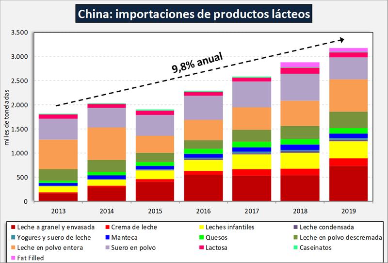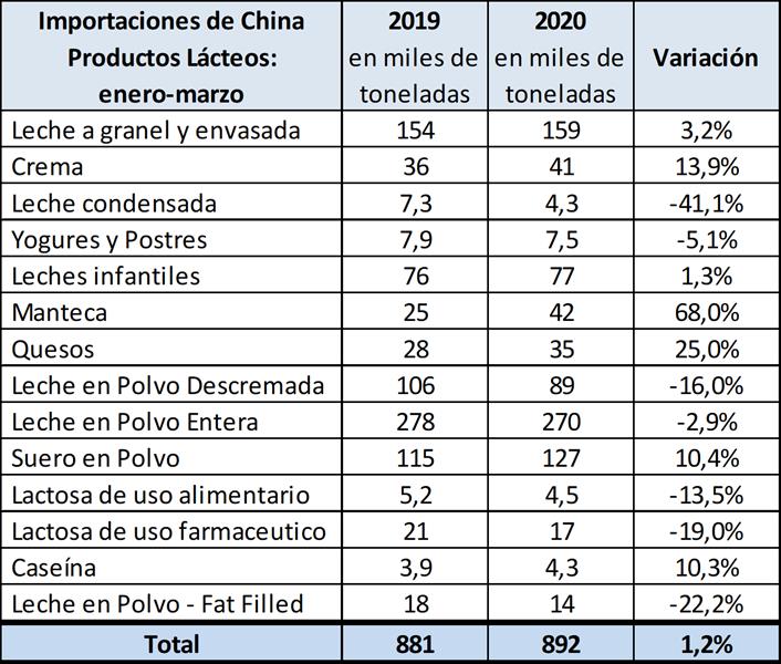CHINA: importaciones de lácteos a marzo del 2020 28/4/2020