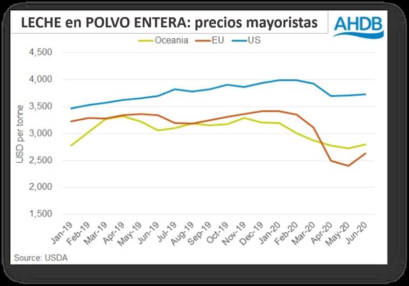 · Según la Bolsa de Valores de Nueva Zelanda, es probable que los compradores hayan estado tratando de comprar mientras los precios son relativamente bajos, y mientras el producto esté disponible (hay disponibilidad limitada en Nueva Zelanda), con la producción de leche para la próxima temporada incierta.