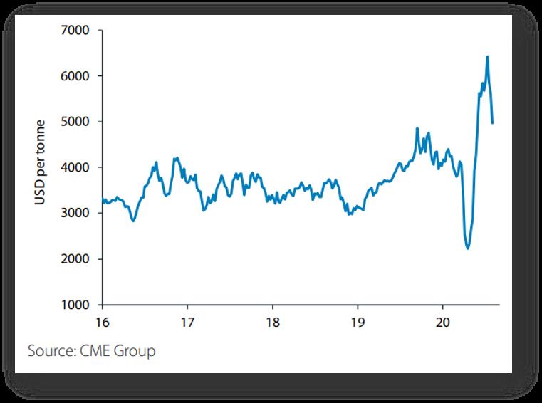 Los mercados lácteos continúan desafiando las expectativas. Los precios del mercado han sido respaldados por programas de apoyo del gobierno de EE. UU. y Europa, el deseo de los consumidores de abastecerse de productos básicos como la leche en polvo y la demanda constante de productos básicos de uso diario como la leche líquida.