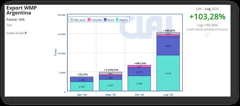 Algunos comerciantes pueden exportar el exceso de LPE, aprovechando la debilidad de la moneda local. En Argentina, las exportaciones de LPE continúan siendo fuertemente positivas, registrando un aumento del + 185,6% en julio respecto al año anterior (LPE + LPD). El principal país comprador sigue siendo Argelia