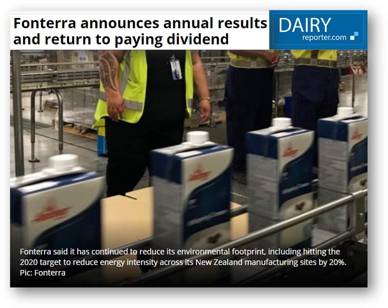 NUEVA ZELANDA: Fonterra anuncia resultados anuales y vuelve a pagar dividendos 21/9/2020
