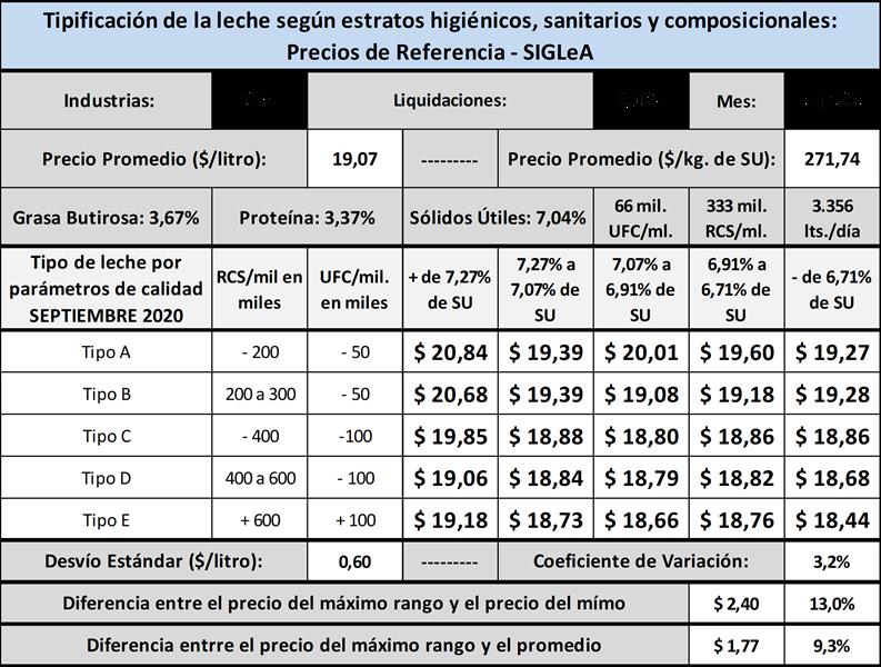 Los precios publicados surgen del promedio del precio básico + bonificaciones de calidad por estrato + el promedio de bonificaciones comerciales ponderados por litro. Los parámetros higiénicos y sanitarios son fijos mes a mes y los parámetros composicionales para definir cada rango variarán por mes en función a la estructura composicional (grasa butirosa + proteína).