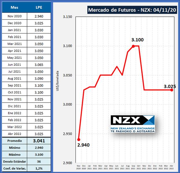 Mercado de Futuros NZX – Leche en Polvo Entera 4/11/2020