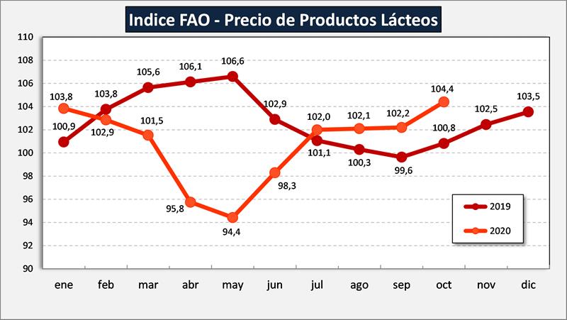 Indice de Precios de los Lácteos de FAO 5/11/2020