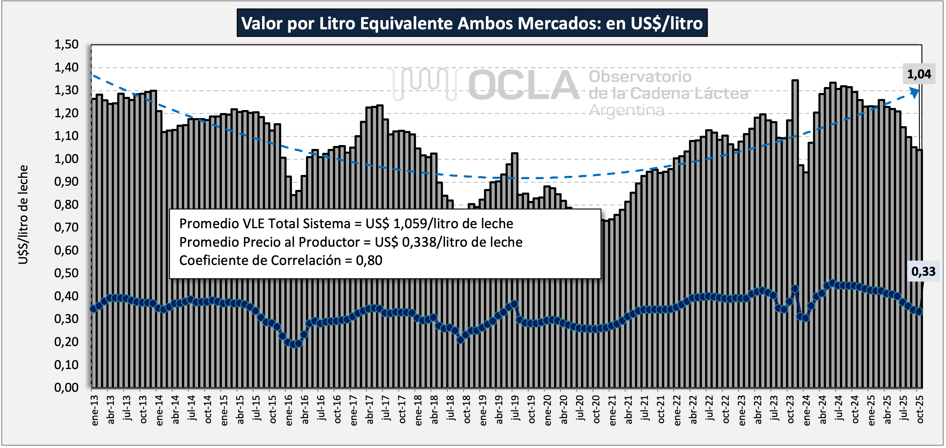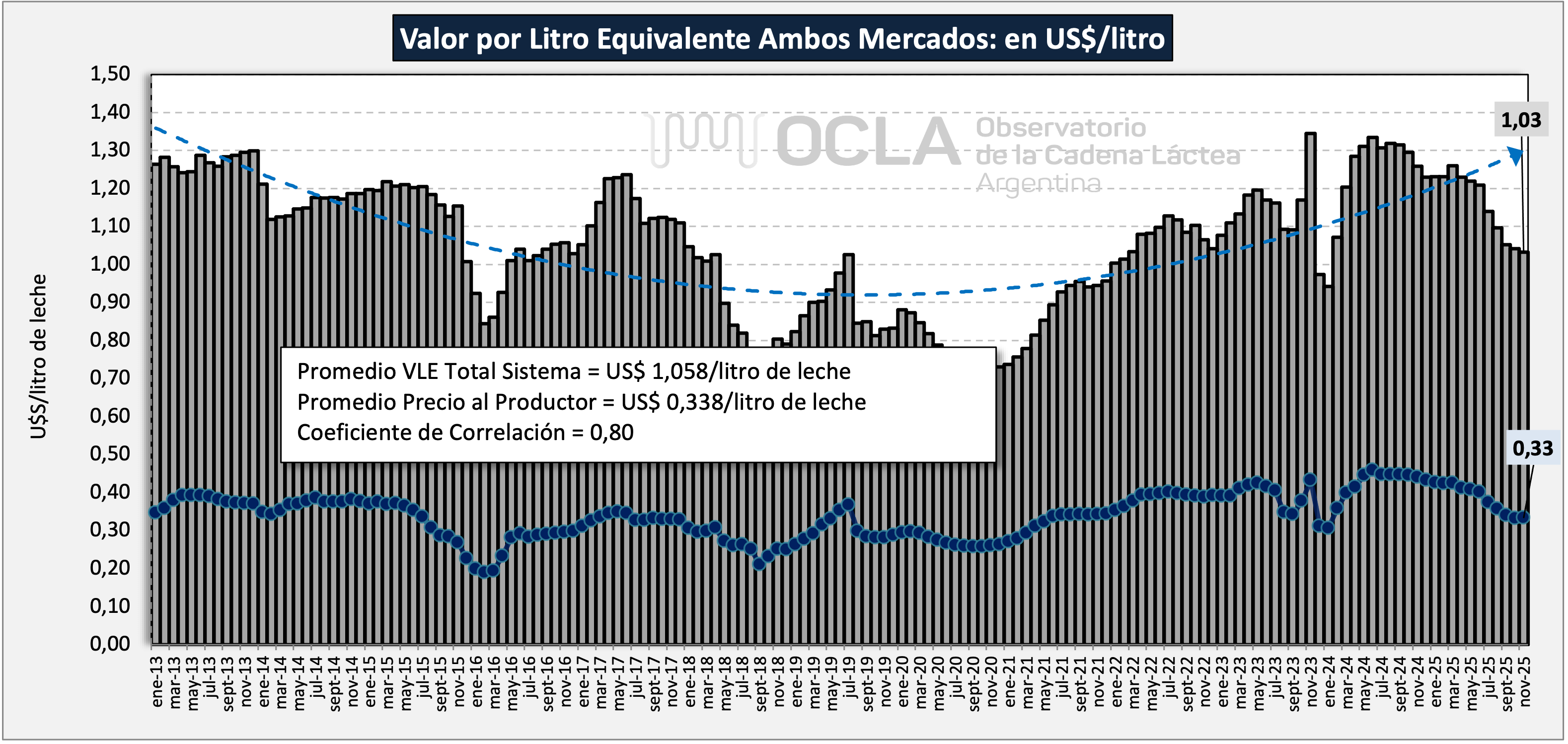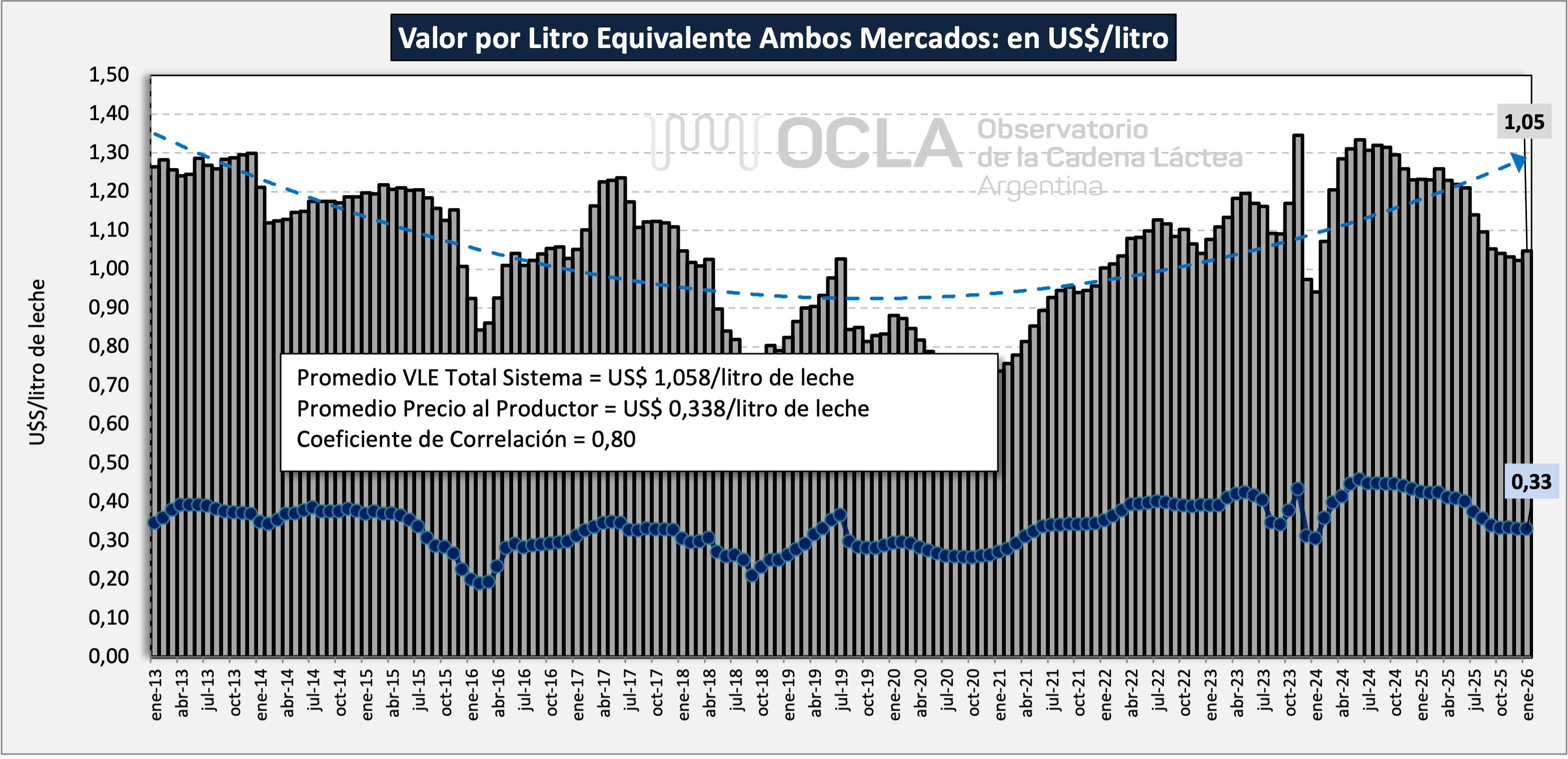 Valor por Litro Equivalente - Ambos Mercados - en US$/litro