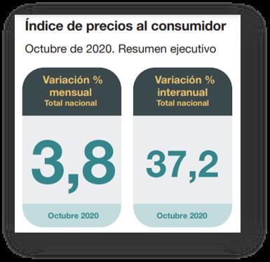 El nivel general del Índice de precios al consumidor (IPC) representativo del total de hogares del país registró en octubre una variación de 3,8% con relación al mes anterior y el acumulado anual fue del 37,2%.