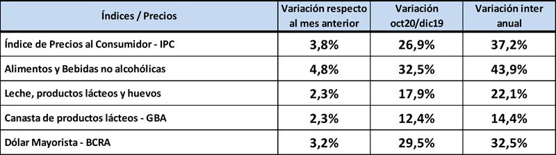 Precios de los lácteos - octubre del 2020 13/11/2020