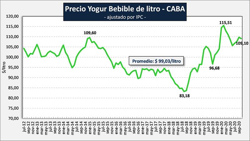 Según datos publicados por la Dirección General de Estadísticas y Censos - Ministerio de Hacienda del Gobierno de la Ciudad de Buenos Aires, los precios de los productos lácteos de esta canasta, tuvieron un crecimiento mensual promedio simple del 1,3% e interanual del 20,7%.