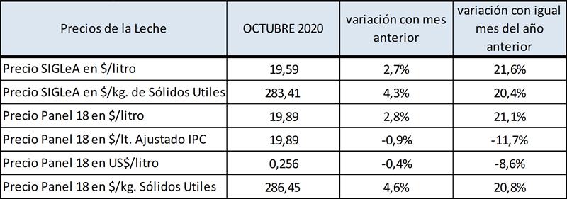 Precio de la leche al Productor - octubre 2020 13/11/2020