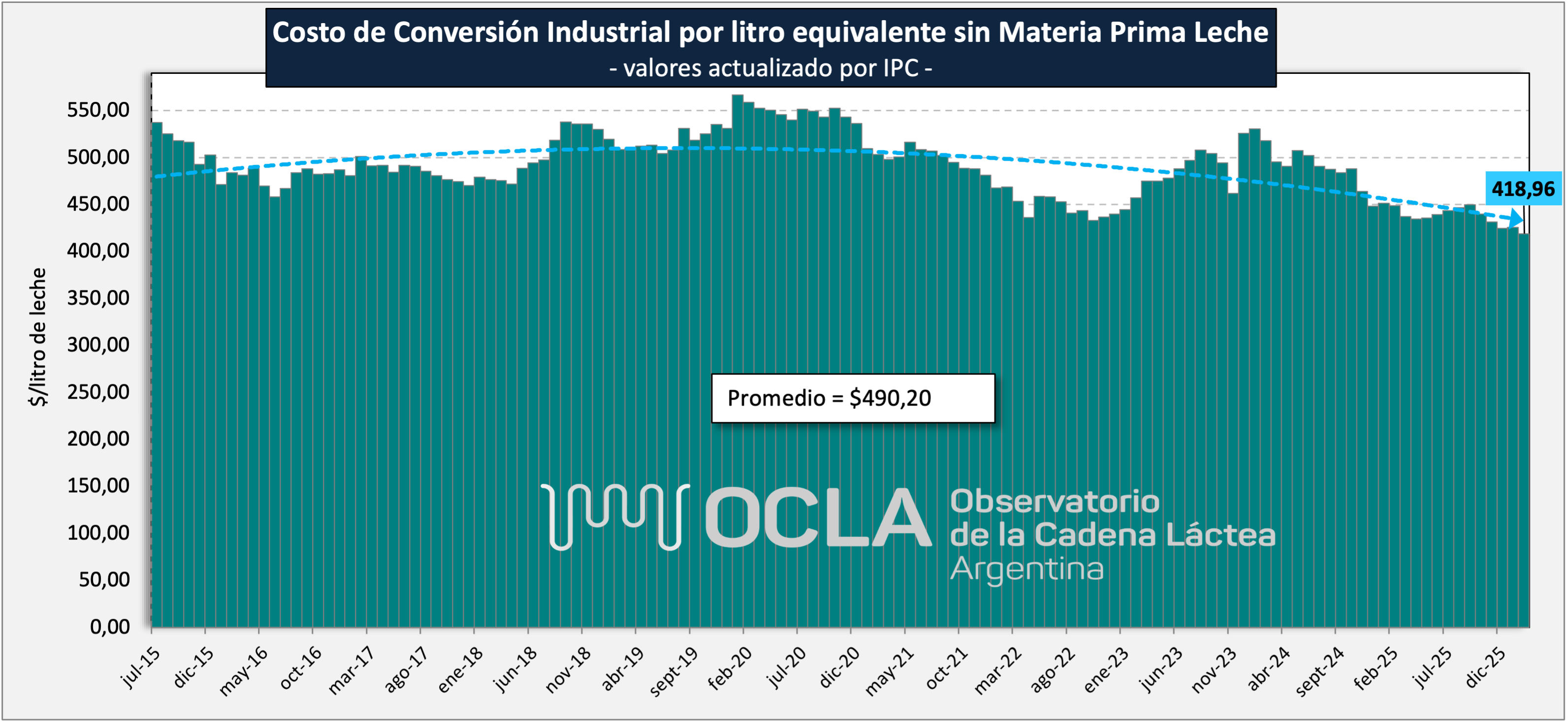 Incluye los costos industriales de fabricación, administración y comercialización sin considerar el costos de la materia prima leche