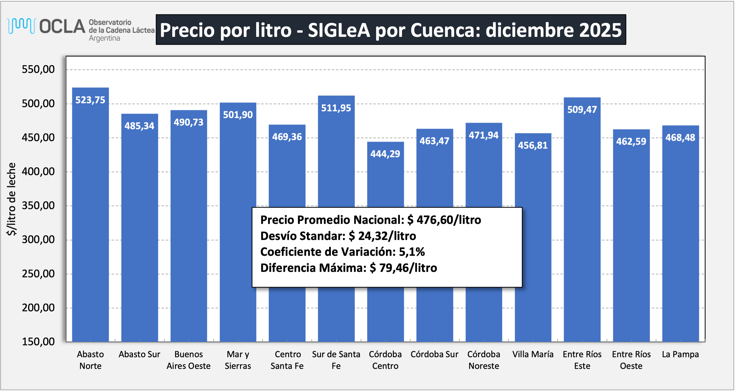 Precios de la Leche SIGLeA - por Cuenca - en $/litro de leche