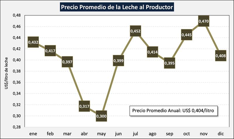 En el 2020 Estados Unidos produjo 101.176 millones de litros de leche, un 2,1% más que en 2019, esta producción se obtuvo con 9,382 millones de cabezas con una producción individual de 10.784 litros (algo más de 33 litros/vaca en ordeño/día).