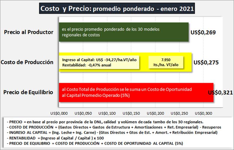 Costo de Producción de US$ 0,275/litro y el Precio de Equilibrio de US$ 0,321/litro.