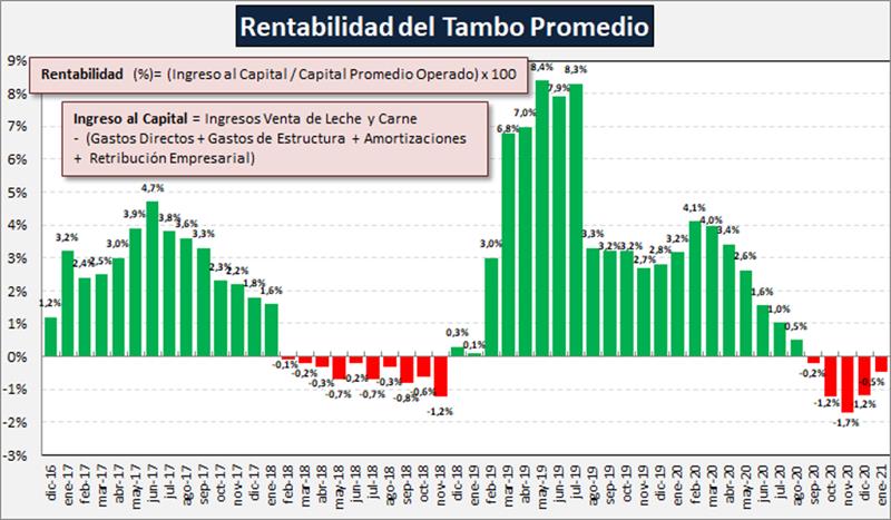 rentabilidad del tambo promedio arroja una tasa de rentabilidad negativa, luego