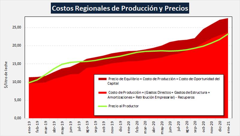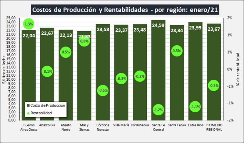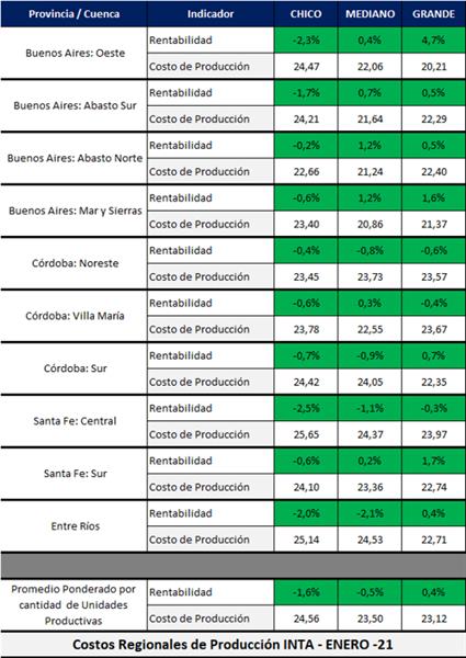 Costos Regionales de Producción de Leche, valores actualizados a ENERO del 2021 23/2/2021