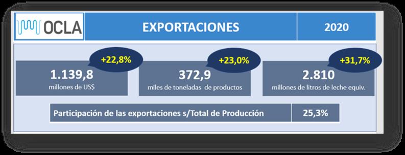 Recordamos las cifras de las exportaciones de productos lácteos en el año 2020: