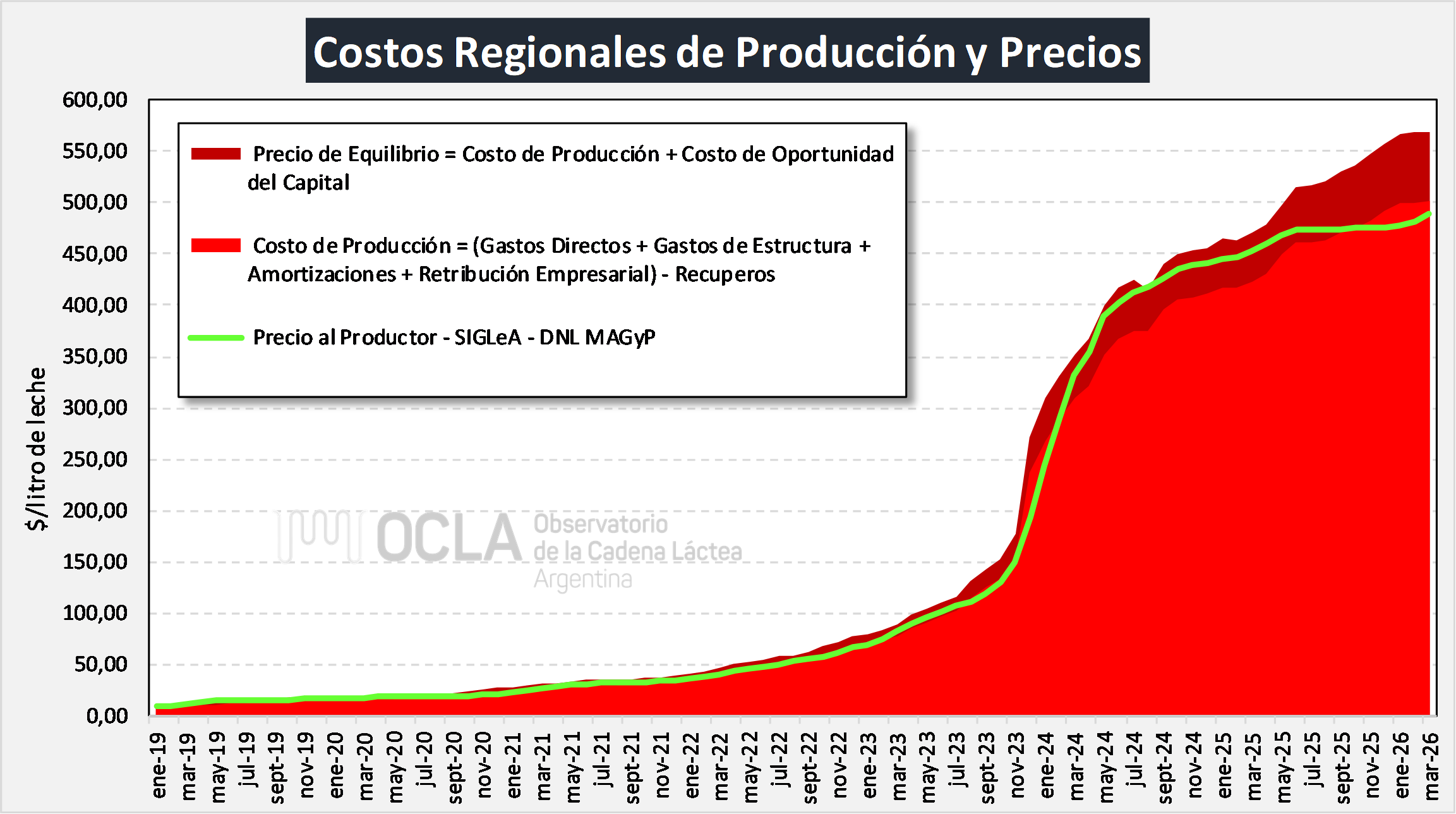 Comparación entre el Precio que percibe el productor, el Costo de Producción y el Precio de Equilibrio (Costo de Producción + Costo de Oportunidad del Capital).