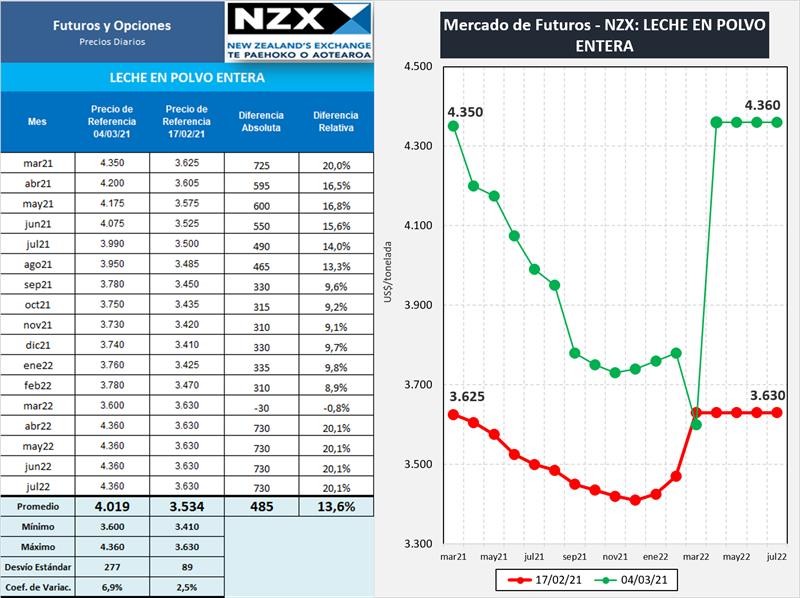 Mercado de Futuros NZX – Leche en Polvo Entera 4/3/2021