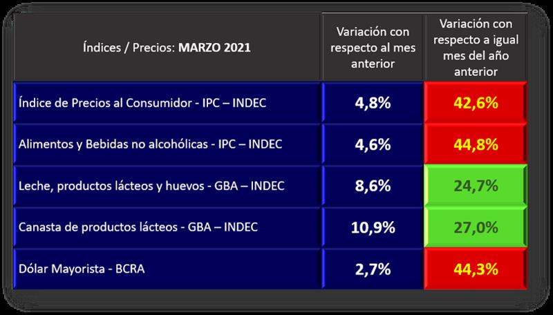 Precios de los lácteos - marzo del 2021 16/4/2021