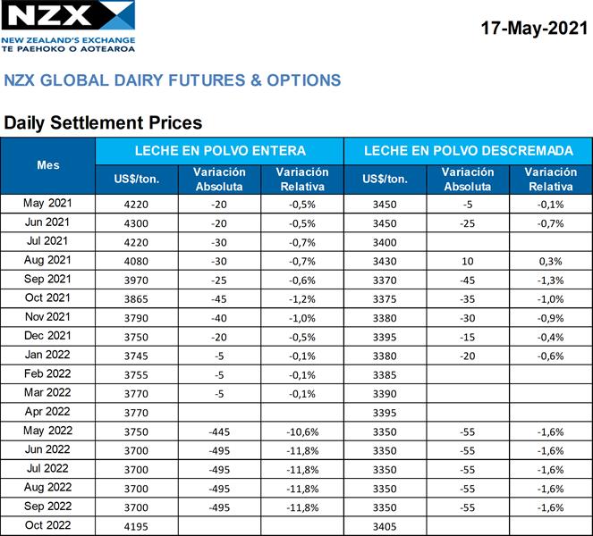 Mercado de Futuros – Leche en Polvo 17/5/2021