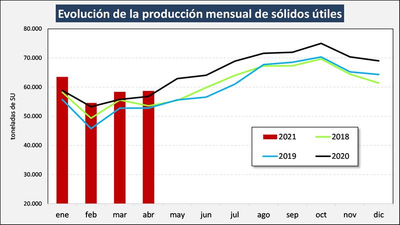 Evolución de la producción al mes de abril del 2021 21/5/2021