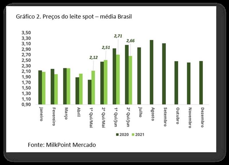 2. El tipo de cambio sufrió una importante corrección, pasando de R $ 5,50 o más a alrededor de R $ 5,00. Los precios de equivalencia de la leche importada rondan los R $ 2,40 / litro, es decir, no hay mucho margen de maniobra para fuertes incrementos que no sean seguidos de una entrada significativa de leche importada.