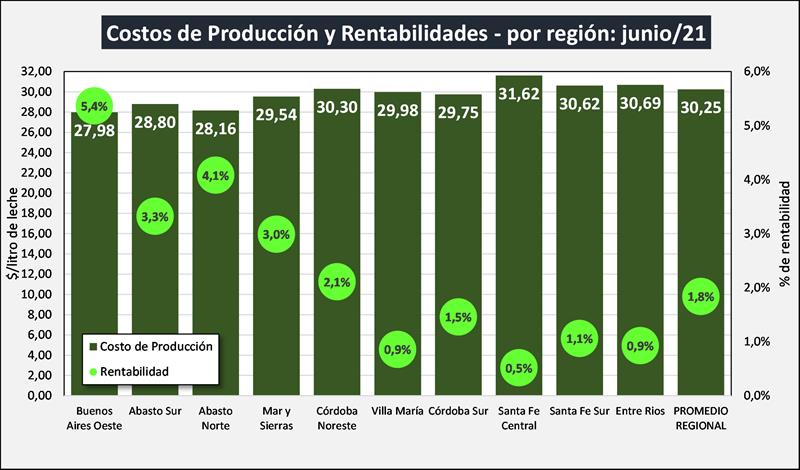Costos Regionales de Producción de Leche, valores actualizados a JUNIO del 2021 27/7/2021