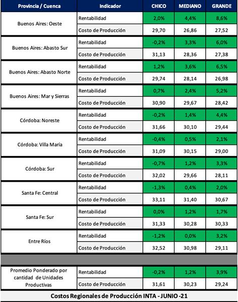 elaborado por el OCLA sobre la publicación de Costos Regionales de Producción - INTA