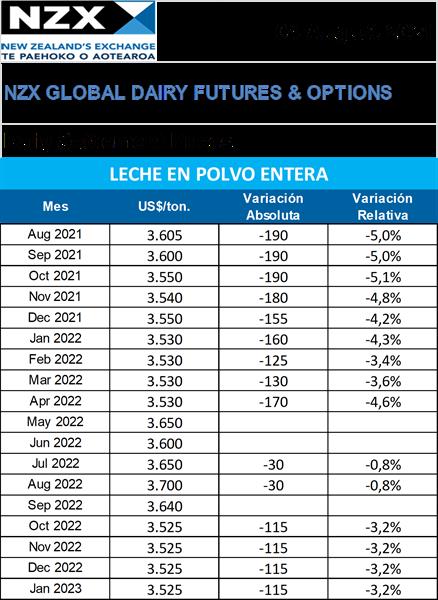 Mercado de Futuros - Leche en Polvo Entera 4/8/2021