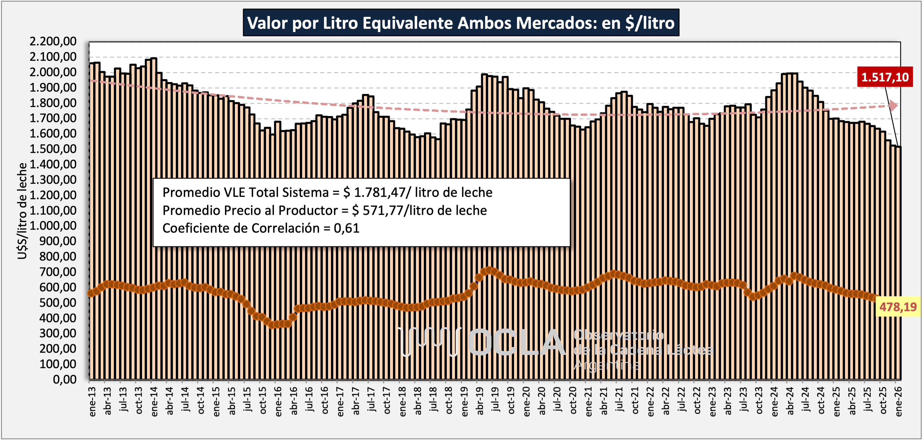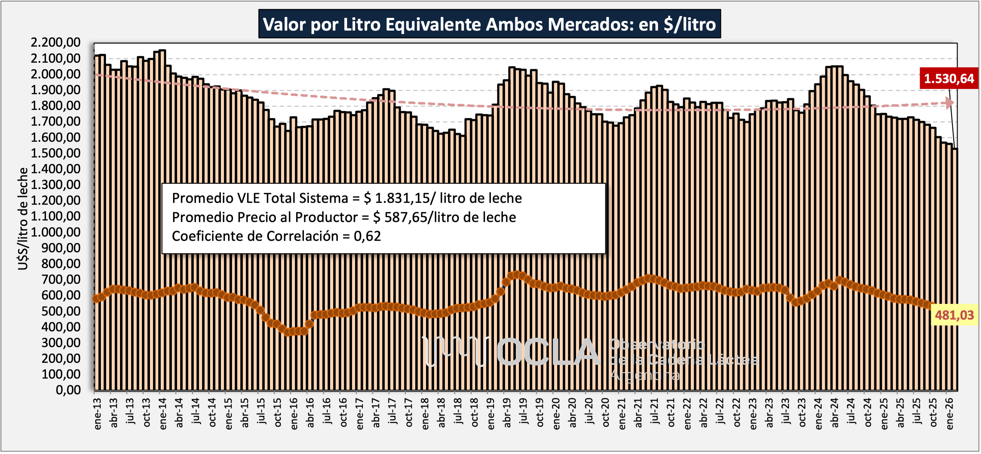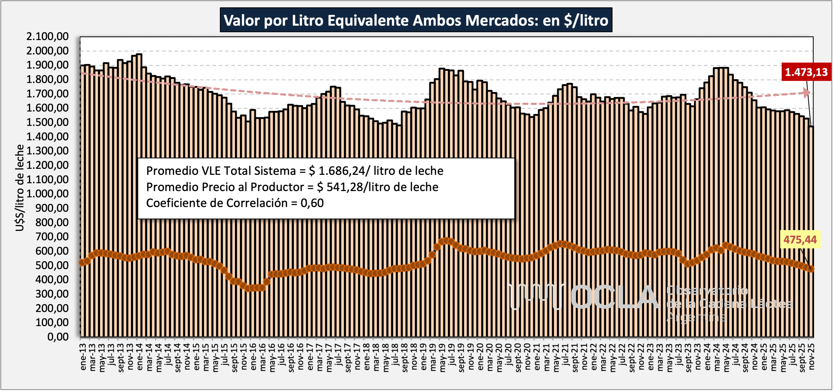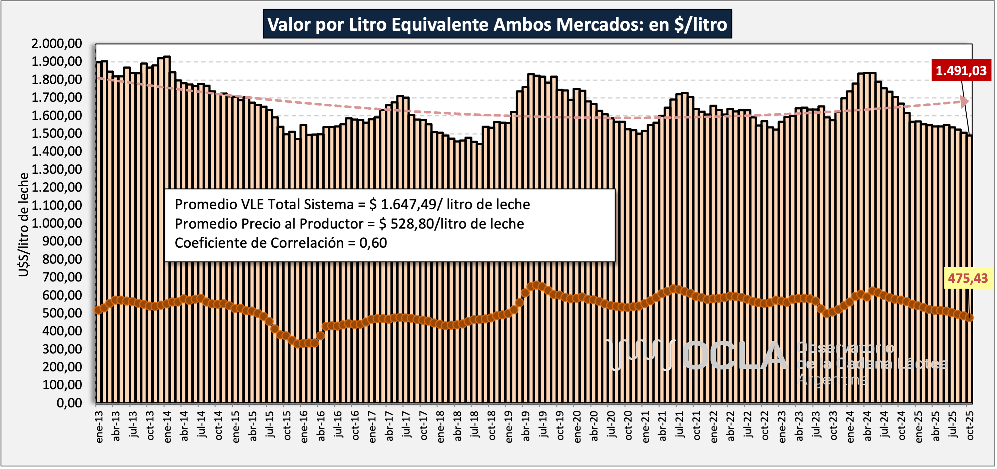 Valor por Litro Equivalente - Ambos Mercados - en $/litro