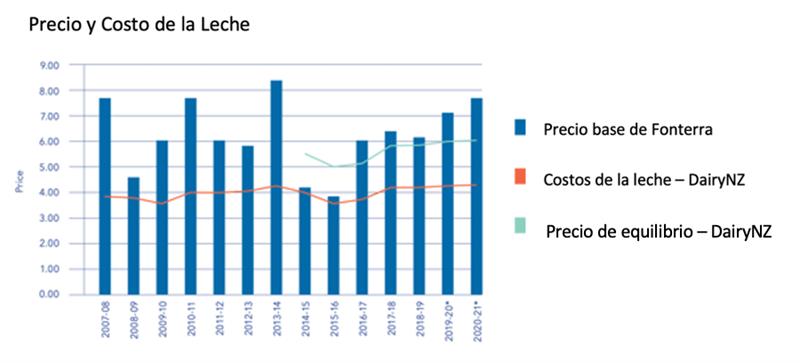 Los precios de la leche han estado por encima del precio medio de equilibrio de la leche durante las últimas cuatro temporadas, y se prevé que continúen muy por encima de este punto para la temporada 2020-21. Sin embargo, los gastos de trabajo agrícola también continúan aumentando y se verán agravados por la creciente presión para que realicen cambios ambientales.