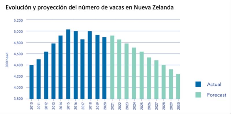 Sin embargo, las reducciones tienen un impacto en la producción de leche, a pesar de los aumentos de productividad. La estimación de NZX es que la producción de leche de Nueva Zelanda se reducirá en un 5% para 2030.