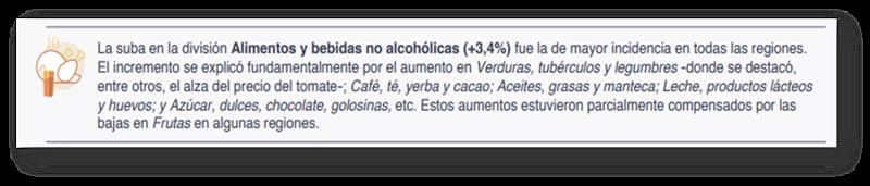 Los alimentos y bebidas no alcohólicas en general, crecieron un 3,4% en julio del 2021, 30,7% en enero-julio 2021 y un 56,4% en el acumulado anual.