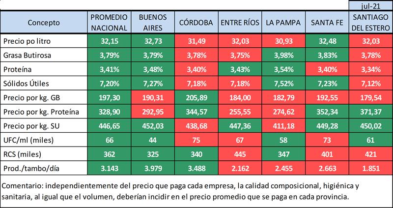 Los precios publicados surgen del promedio del precio básico + bonificaciones de calidad por estrato + el promedio de bonificaciones comerciales ponderados por litro. Los parámetros higiénicos y sanitarios son fijos mes a mes y los parámetros composicionales para definir cada rango variarán por mes en función a la estructura composicional (grasa butirosa + proteína).