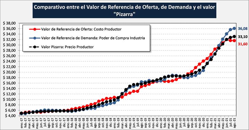 Valor Pizarra: precio publicado por la DNL-MAGyP en base a la muestra de 18 empresas.