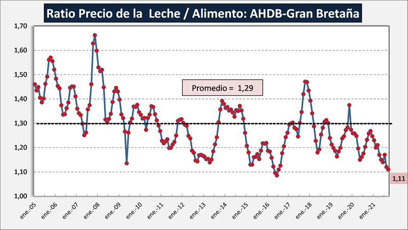Indicador Milk Feed Price Ratio elaborado por AHDB Dairy del Reino Unido.