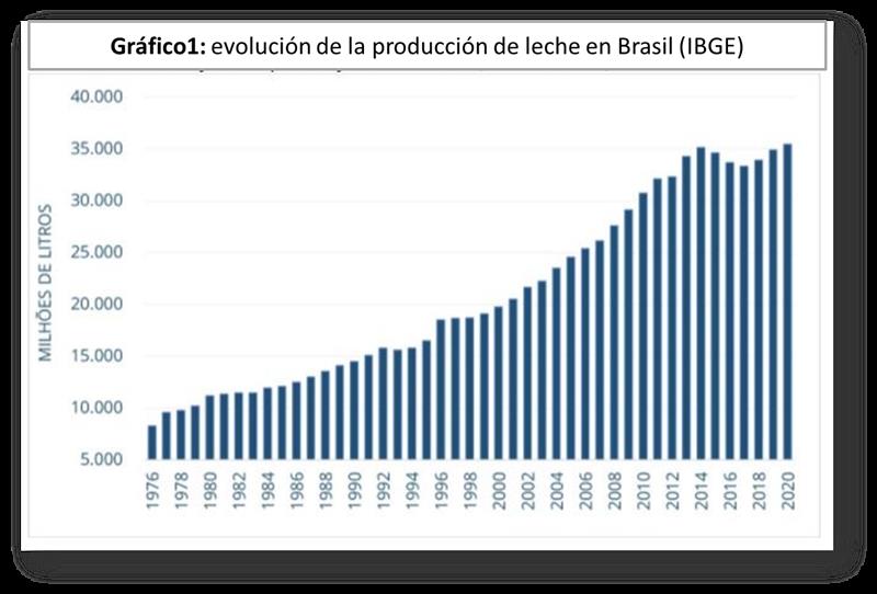 De hecho, los datos sobre producción de leche recopilados por el IBGE muestran que de 2013 a 2020 crecimos solo un 3,4%, ¡esto en 7 años (gráfico 1)! No hace mucho, este era nuestro crecimiento anual. De hecho, fue más alto: de 2000 a 2013, crecimos no menos de 4,3% cada año. Ahora, todos estos años estamos estancados en 34-35 mil millones de litros/año.