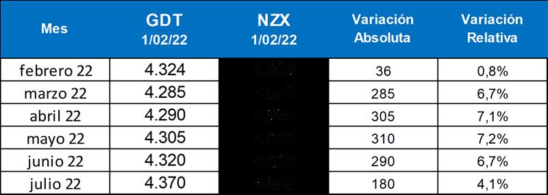 Los precios futuros del NZX superan a los del GDT, debido fundamentalmente a la menor demanda de China de los últimos meses y la incertidumbre futura respecto al comportamiento de la misma.