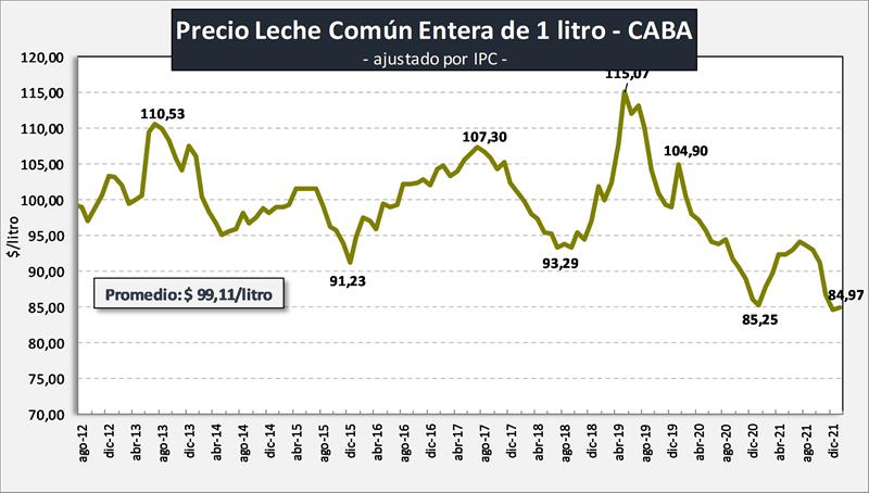 Según datos publicados por la Dirección General de Estadísticas y Censos - Ministerio de Hacienda del Gobierno de la Ciudad de Buenos Aires, los precios de los productos lácteos de esta canasta, tuvieron un crecimiento mensual promedio ponderado del 3,7% e interanual del 63,9%. El ponderado es elaborado por OCLA sobre el mismo criterio mencionado para la canasta GBA de INDEC.