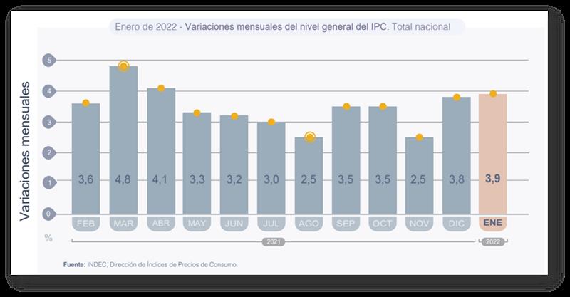 Los alimentos y bebidas no alcohólicas en general, crecieron un 4,9% en enero de 2022, y un 50,5% en el acumulado anual.