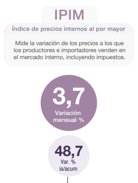 El nivel general del índice de precios internos al por mayor (IPIM) registró un aumento de 3,7% en enero de 2022 respecto del mes anterior, y acumula una suba del 48,7% en los últimos 12 meses.