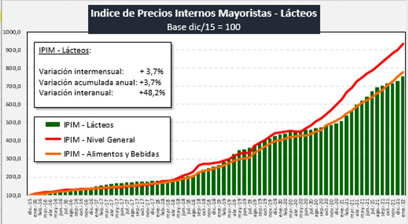 Índice de Precios Internos Mayoristas – IPIM – Lácteos – enero 2022 17/2/2022