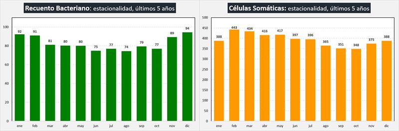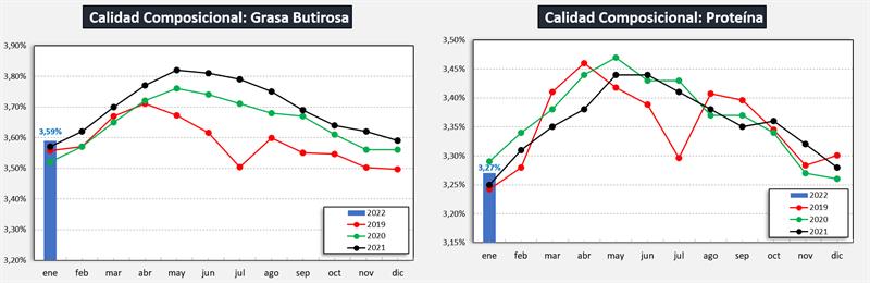 Calidad de Leche 25/2/2022Leche de Referencia ![]() Art. 9° - Resolución N° 229/2016 SIGLeA en términos del art. 2° de la Resolución Conjunta N° 739 y N° 495/2011. Evolución de la Calidad de Leche ![]() Evolución Mensual de la Calidad, últimos años ![]() ![]() Estacionalidad de la Calidad de Leche ![]() ![]() Calidad, volumen y precio por Provincia ![]() Calidad, volumen y precio por Cuenca ![]() Promedios Ponderados Anuales de la Calidad de Leche ![]() ![]() ![]() Para ver toda la información: https://www.ocla.org.ar/contents/newschart/portfolio/?categoryid=13 elaborado por el OCLA con datos de la DNL-MAGyP