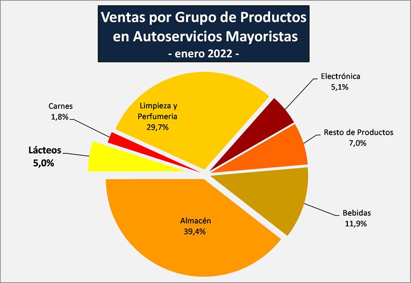 Las ventas de lácteos representaron el 5,0% de las ventas totales de los autoservicios mayoristas durante el mes de enero de 2022.