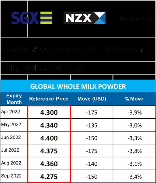 Mercado de Futuros NZX – Leche en Polvo Entera 6/4/2022