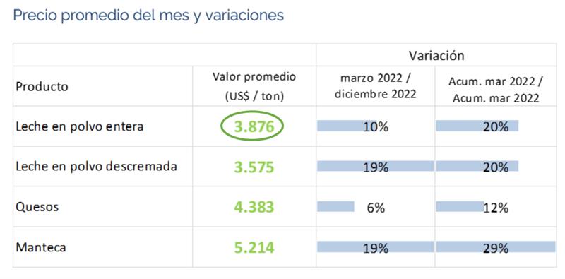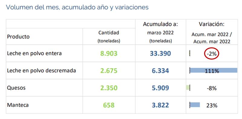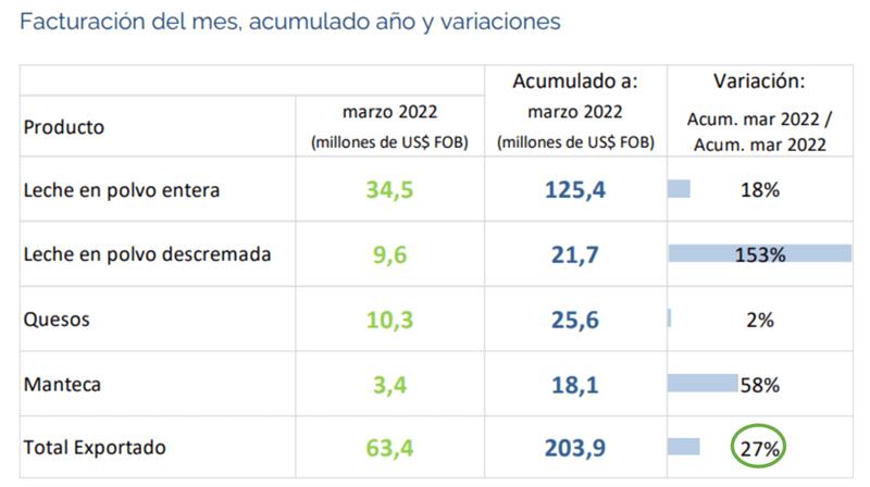 URUGUAY: exportaciones de lácteos - marzo 2022