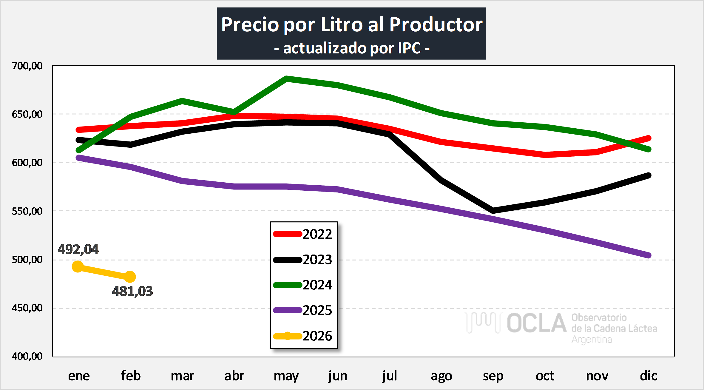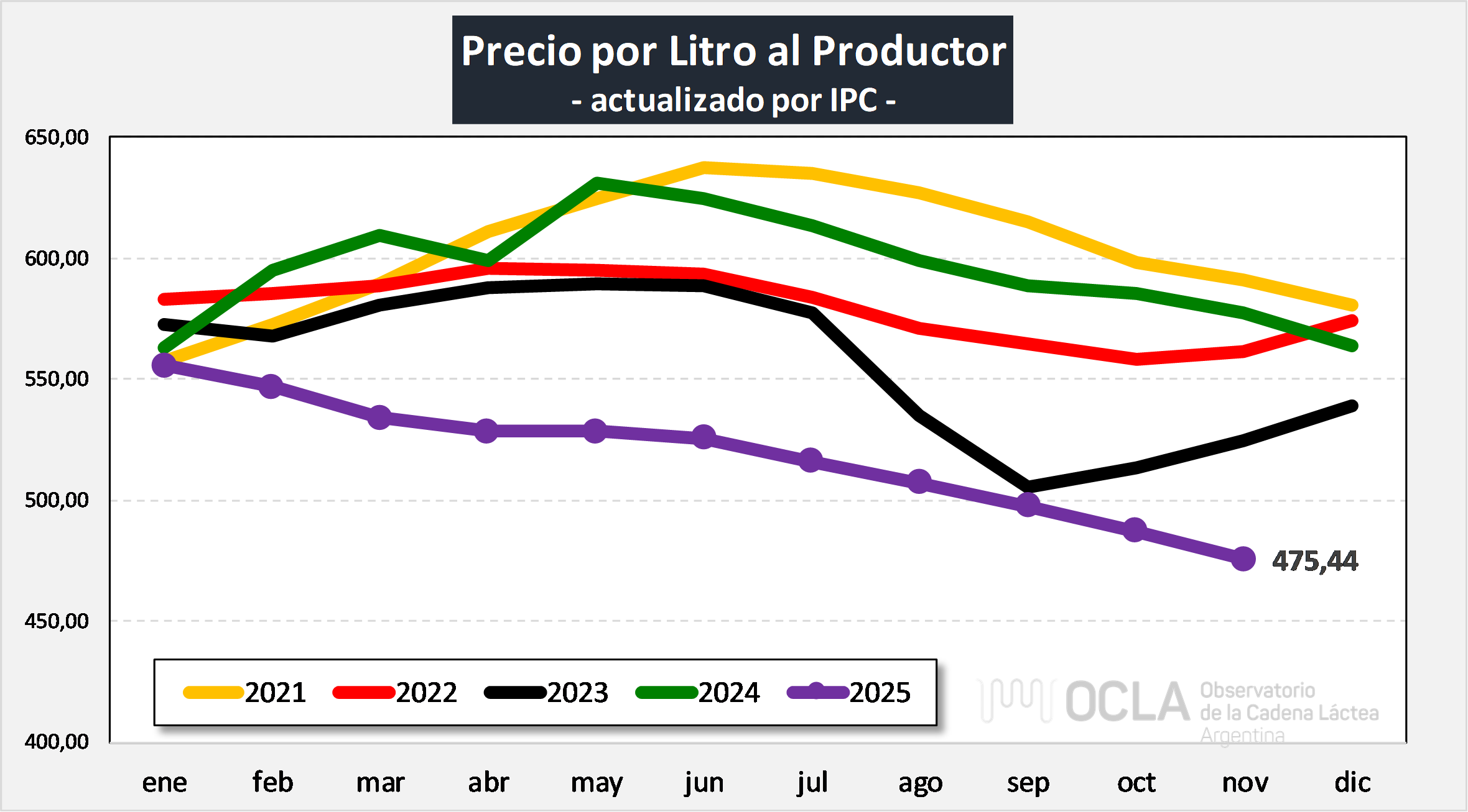 Precio de la leche al Productor: moneda constante - últimos 5 años