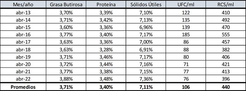 Calidad de Leche 21/5/2022
