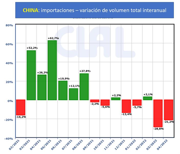 elaborado por el OCLA sobre la base de información que publica CLAL.it y Aduana de China
