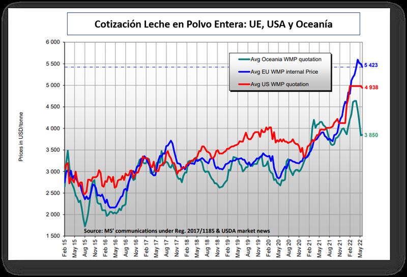 - Las entregas de leche de la Unión Europea disminuyeron un